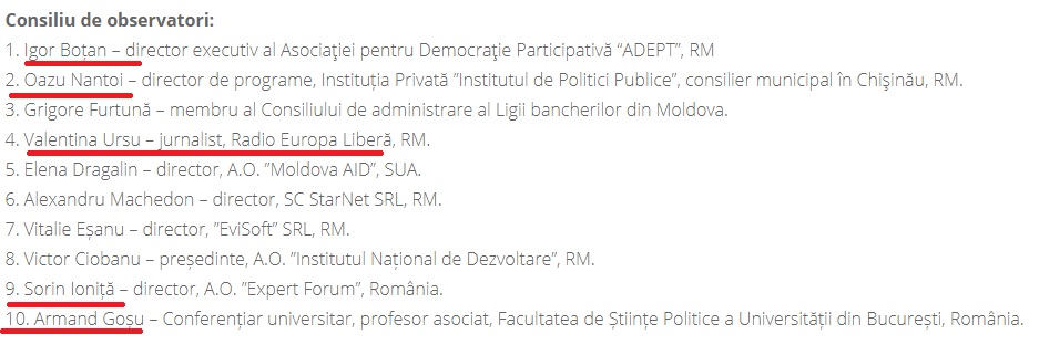 În același timp, în consiliul de observatori al ”Watchdog”, îi găsim pe același Igor Boțan, dar și pe Valentina Ursu, colega lui Vasile Botnaru de la Europa Liberă.