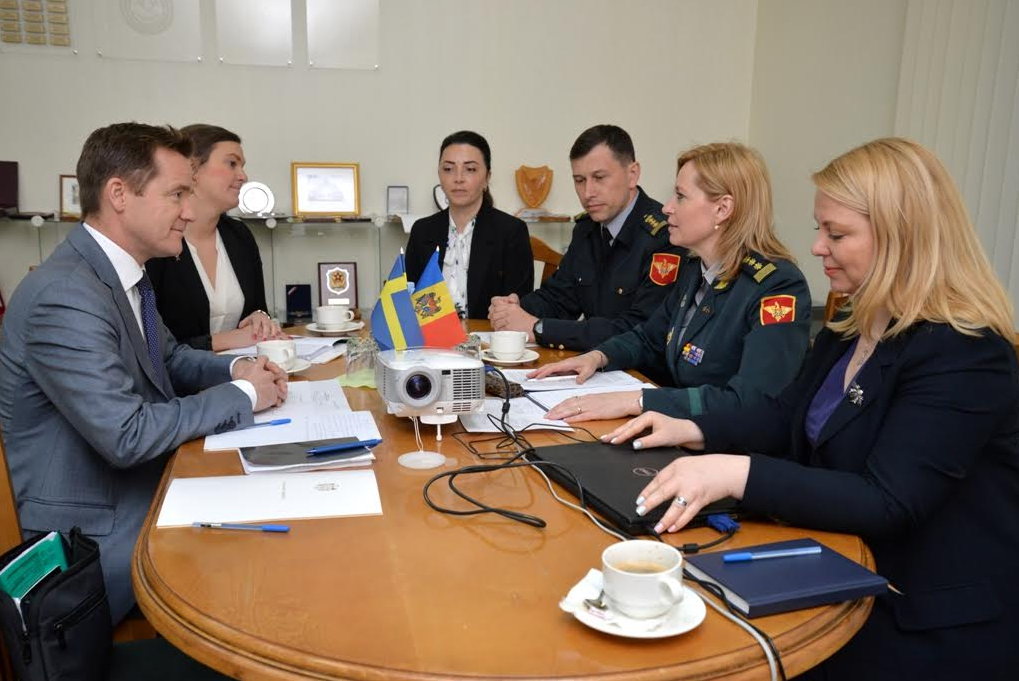 La Chişinău, delegaţia din Regatul Suediei s-a întâlnit cu Secretarul General de Stat, Radu Buduja. Părţile au discutat despre implementarea de către ţara noastră a prevederilor Rezoluţiei Consiliului de Securitate al ONU 1325 „Femeile, Pacea şi Securitatea” şi Programului în domeniul armelor de calibru mic/uşor şi a stocurilor de muniţii (SALW), acţiuni derulate cu susţinerea Suediei.