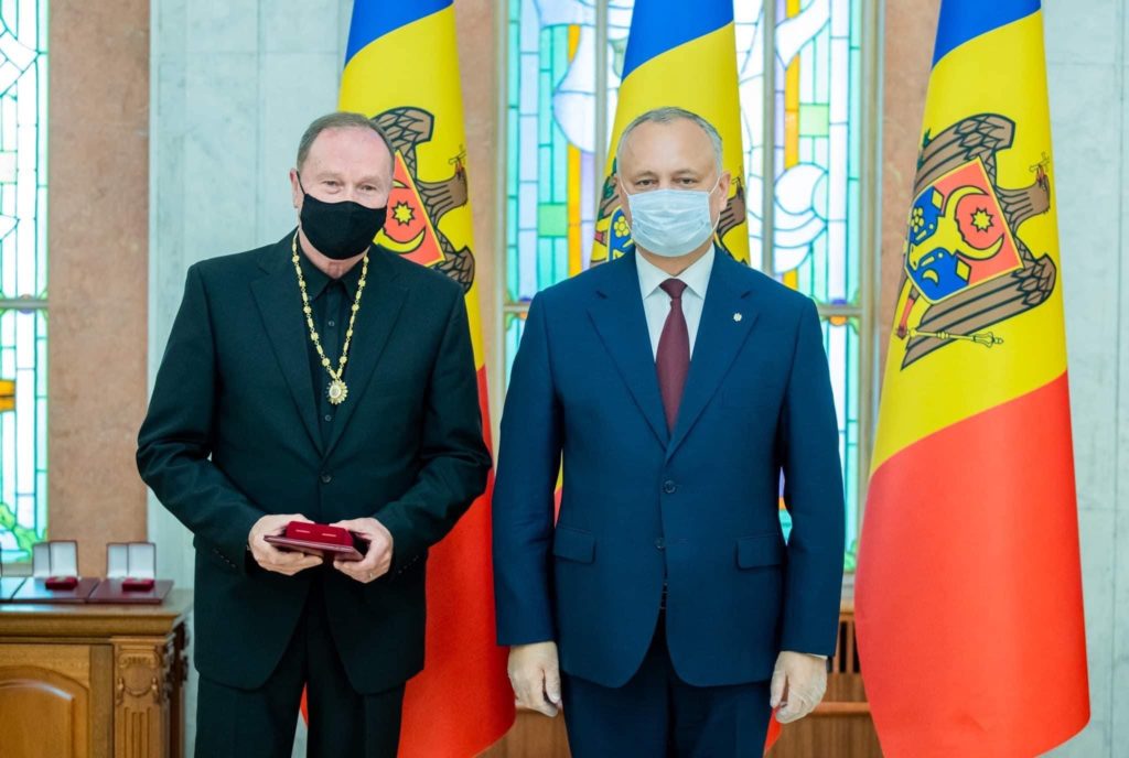 Igor Dodon a înmânat ieri înalte distincții de stat unui grup de cetățeni ai Republicii Moldova, conferite anterior, prin decrete prezidențiale. Ordinele și medaliile au fost oferite în semn de înaltă apreciere a meritelor deosebite față de stat, pentru muncă îndelungată și prodigioasă în domeniile cultură, învățământ, medicină, știință, sport.
