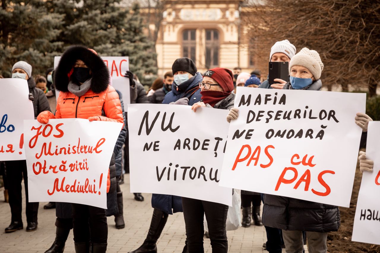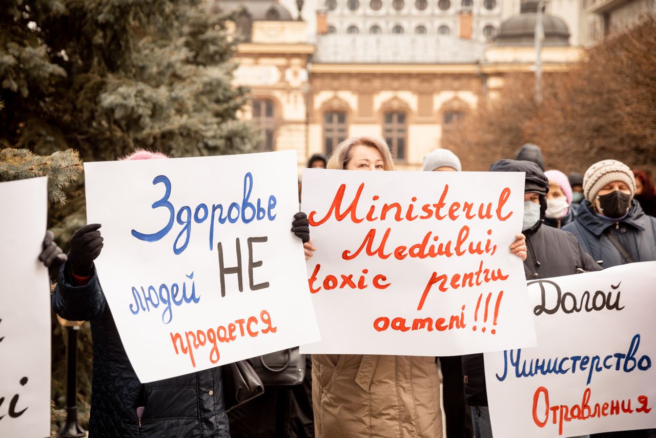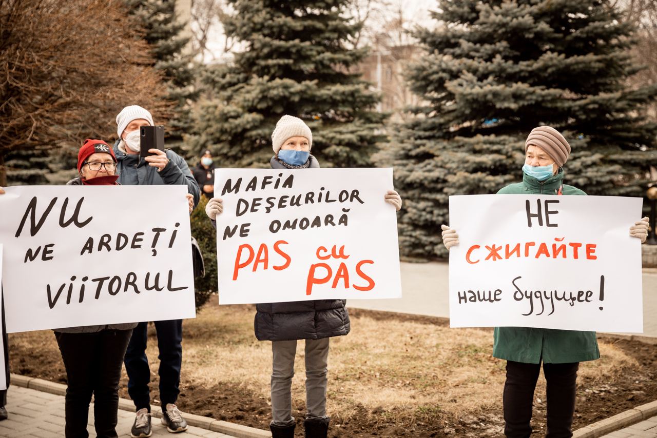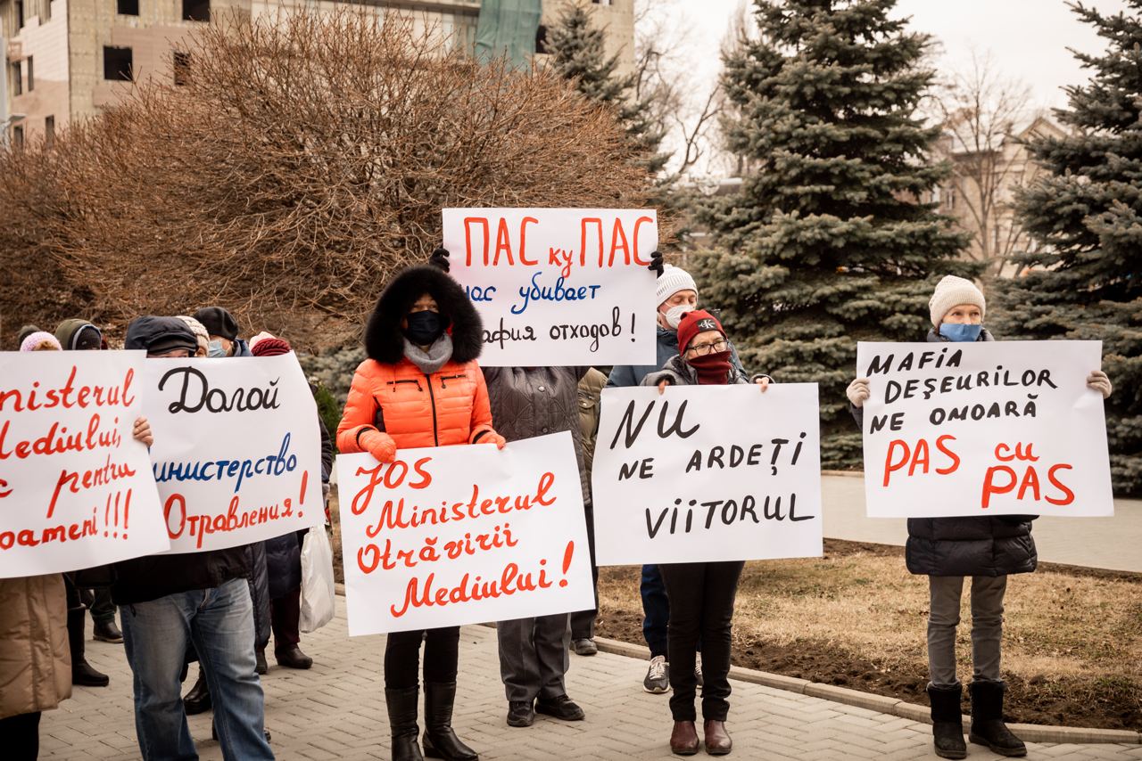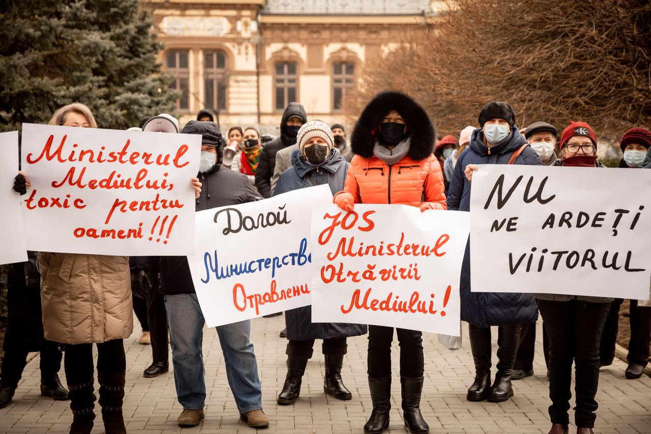 Participanții la acțiune au adus cu ei câteva anvelope uzate, pe care scria „DEMISIA”. De asemenea, ei aveau asupra lor pancarte cu mesajele „Ministerul Mediului, toxic pentru oameni”, „Mafia deșeurilor ne omoară PAS cu PAS”, „Sănătatea oamenilor nu e de vânzare”, „Jos Ministerul Otrăvirii Mediului!”, „Moldova NU este incinerator de cauciucuri”, „Nu ne ardeți viitorul”.