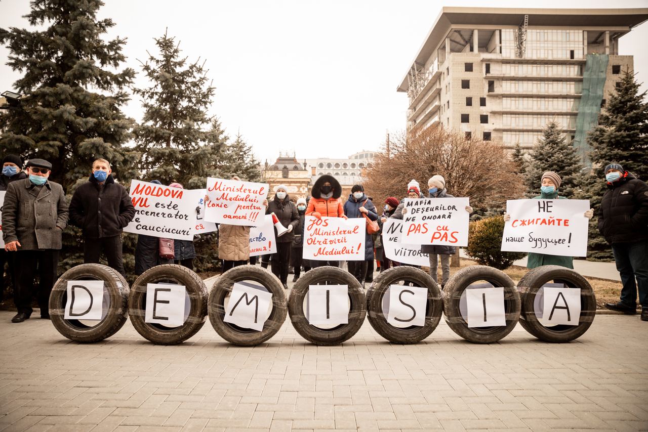 Participanții la acțiune au adus cu ei câteva anvelope uzate, pe care scria „DEMISIA”. De asemenea, ei aveau asupra lor pancarte cu mesajele „Ministerul Mediului, toxic pentru oameni”, „Mafia deșeurilor ne omoară PAS cu PAS”, „Sănătatea oamenilor nu e de vânzare”, „Jos Ministerul Otrăvirii Mediului!”, „Moldova NU este incinerator de cauciucuri”, „Nu ne ardeți viitorul”.
