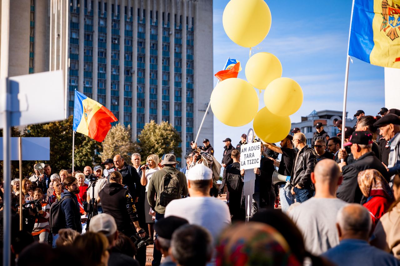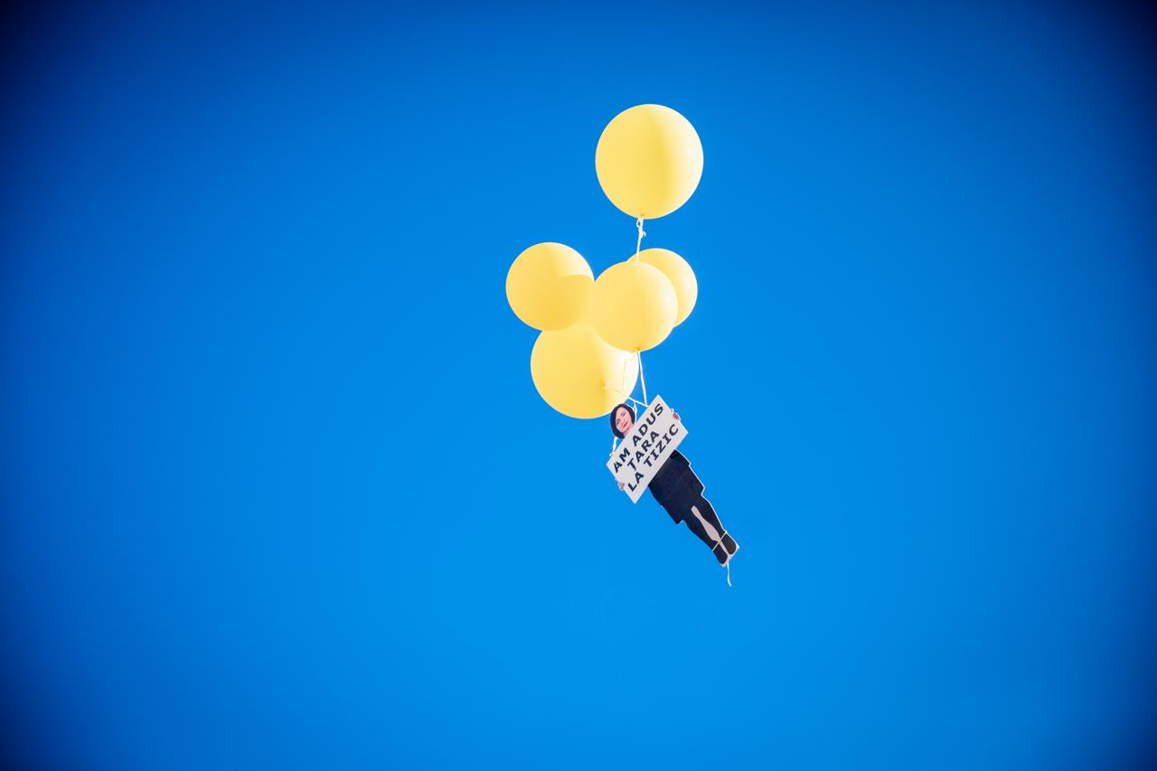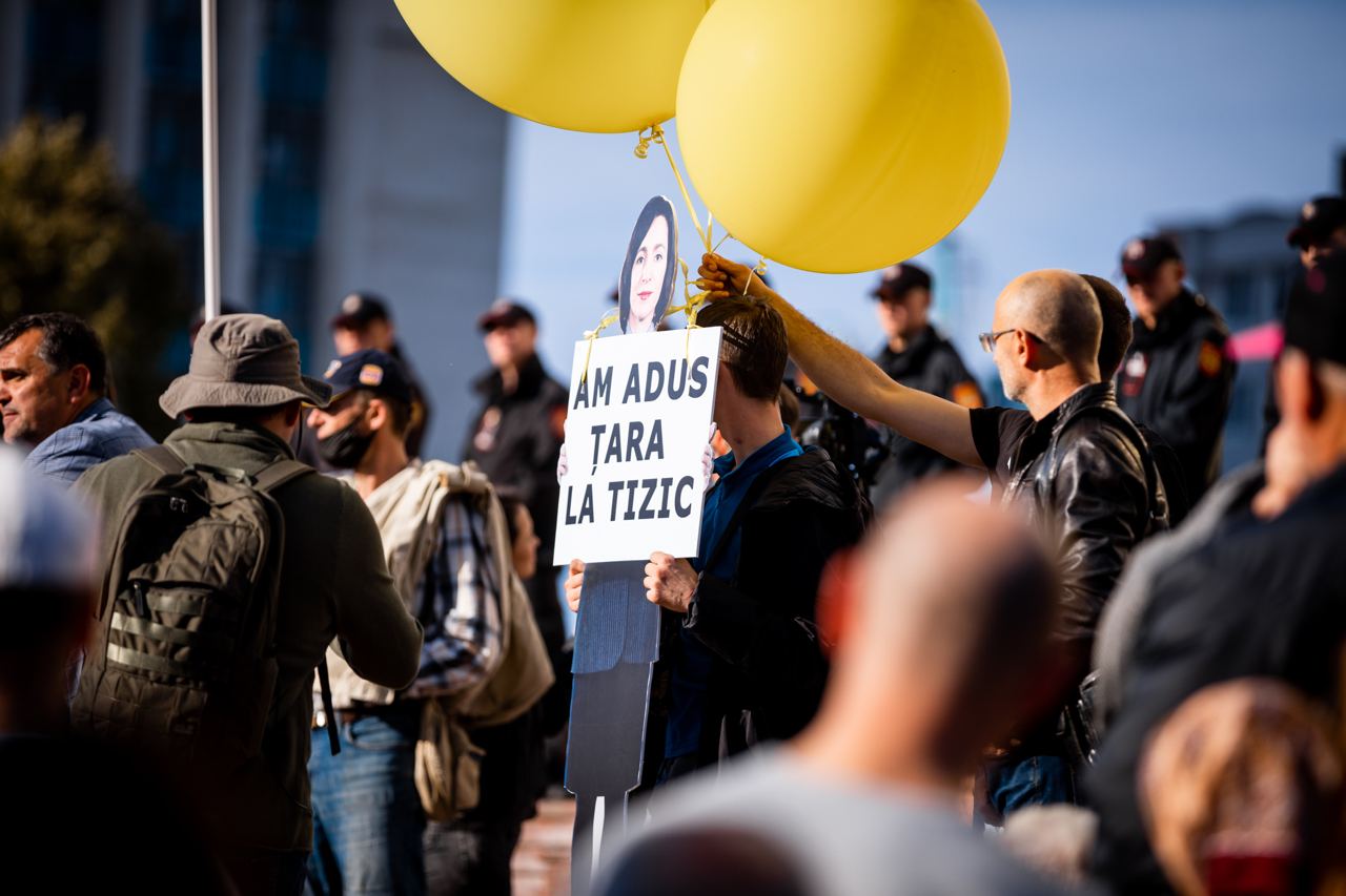 Maia Sandu a zburat la propriu din fața zecilor mii de protestatari, care au venit în Președinției să-i ceară demisia. De fapt, este vorba despre o machetă cu chipul președintelui care a fost legată de niște baloane galbene și lansată spre cer. Acțiunea s-a petrecut în aplauzele mulțimii care îi cerea Maiei Sandu să plece, alături de toată guvernarea PAS, și să fie organizate alegeri prezidențiale și parlamentare anticipate.