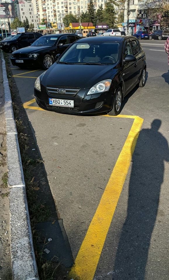 În imagine se vede că unii șoferi din Capitală au confundat marcajul galben, care denotă locul pentru oprirea transportului public, cu o parcare.