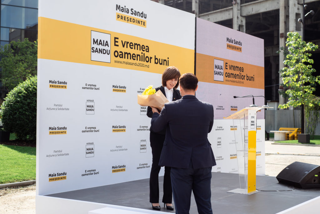 După închiderea evenimentului, Gheorghe Ichim a stat în preajma Maiei Sandu, în timp ce aceasta le mulțumea celor din echipă pentru prezență.