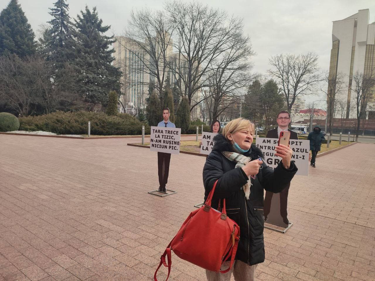 Protestatarii au adus și câteva imagini în mărime naturală a președintelui țării, Maia Sandu, președintelui Parlamentului, Igor Grosu și a vicepreședintelui Parlamentului, Mihai Popșoi, cu mesaje din numele lor: ”Țara trece la tizic, n-am rușine niciun pic” sau ”Am scumpit într-una gazul, sigur că ni-i gros obrazul”, mesajele făcând referire la protestele organizate de liderii PAS, pe timpul când nu erau la putere, organizate împotriva majorării prețurilor la gaze de atunci, situația de astăzi în care ne-a adus PAS, fiind însă mult mai gravă.