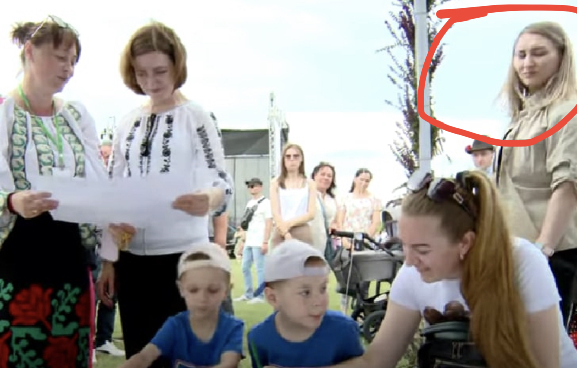 Din imagini se vede că în timp ce Maia Sandu stă alături de copii, aceasta este păzită de bodyguarzi.