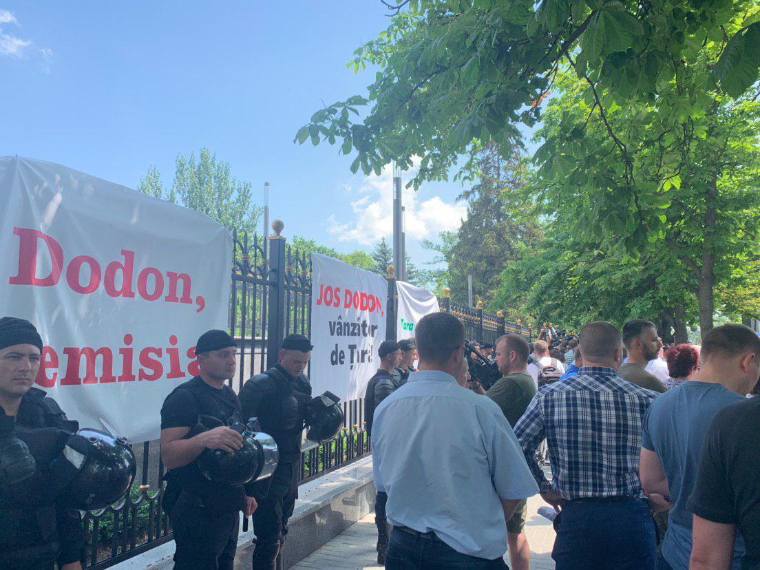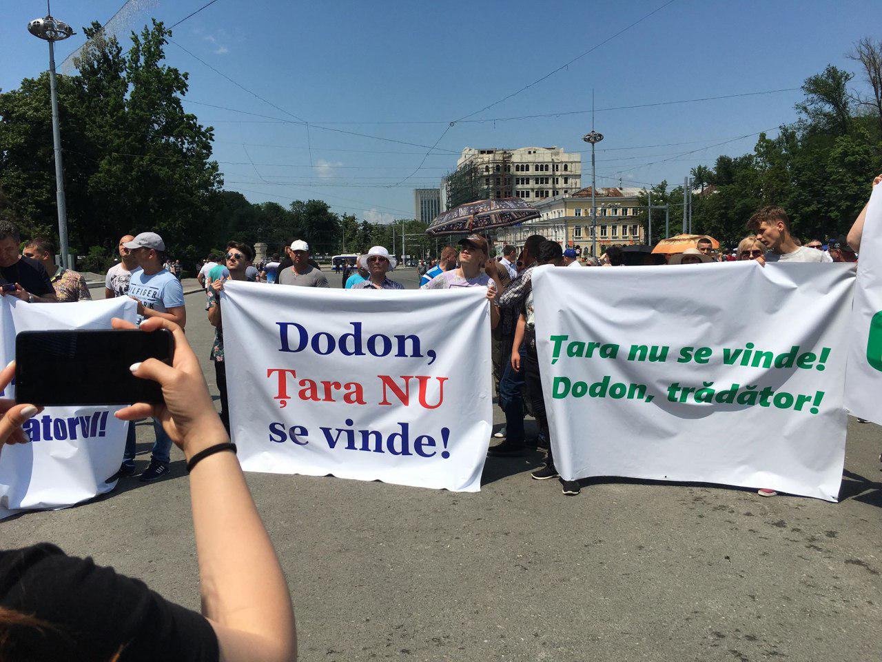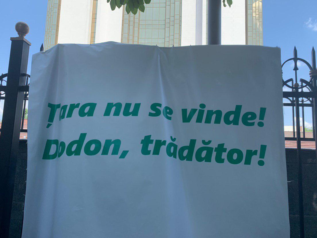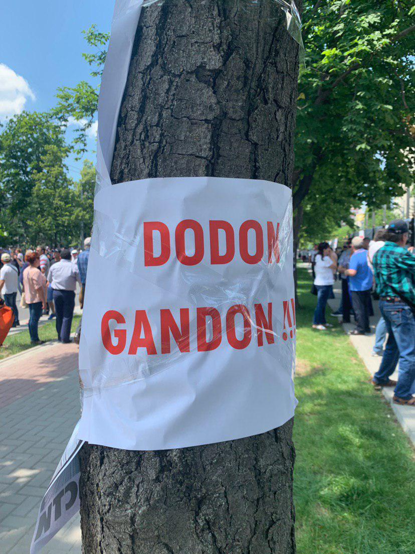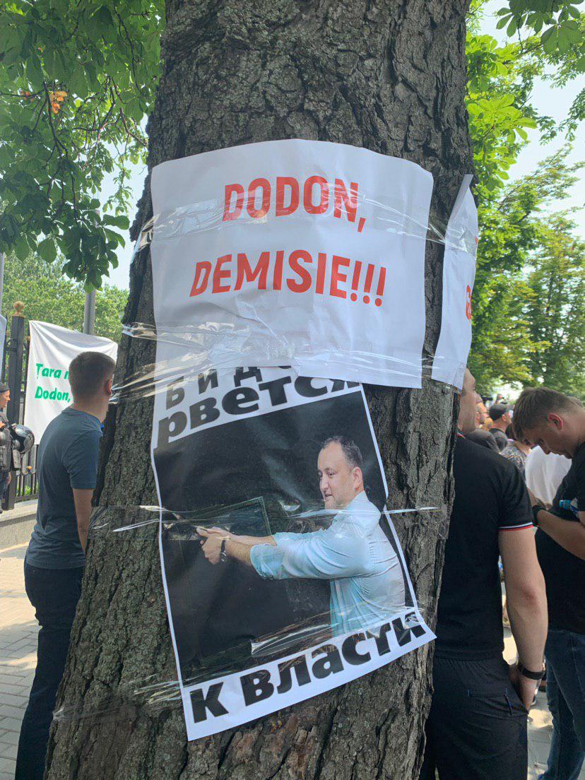Vedeți mai jos câteva imagini de la Președenție cu pancardele oamenilor. Mulțimea scandează „Dodon TRĂDĂTOR!, Țara nu se vinde!, Dodon demisia!”.