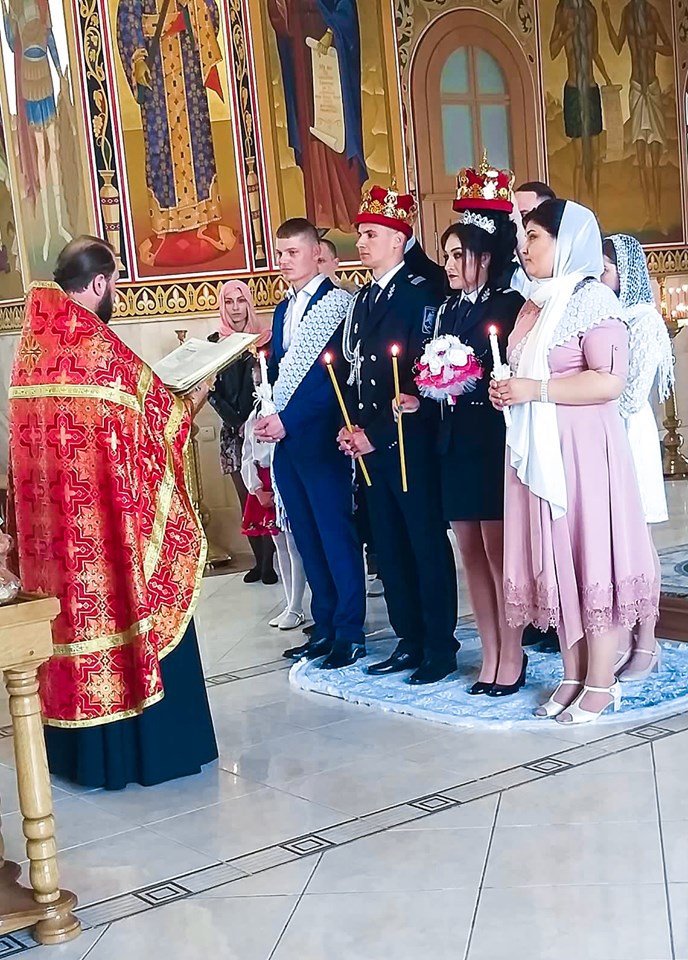 Cei doi polițiști de frontieră, Arteom Fediuc și Valeria Ciochină și-au spus DA în această duminică. De menționat este faptul că cei doi au ales să meargă la biserică, fiind îmbrăcați în uniforma militară, cea care a și contribuit la unirea acestor două suflete.