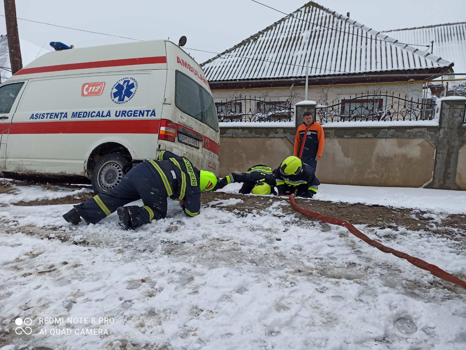 Potrivit primelor informații din cauza condițiilor meteo nefavorabile ambulanța care transporta o pacientă în vârstă de 98 de ani a derapat de pe traseu în timp ce echipajul se deplasa cu femeia spre spital.