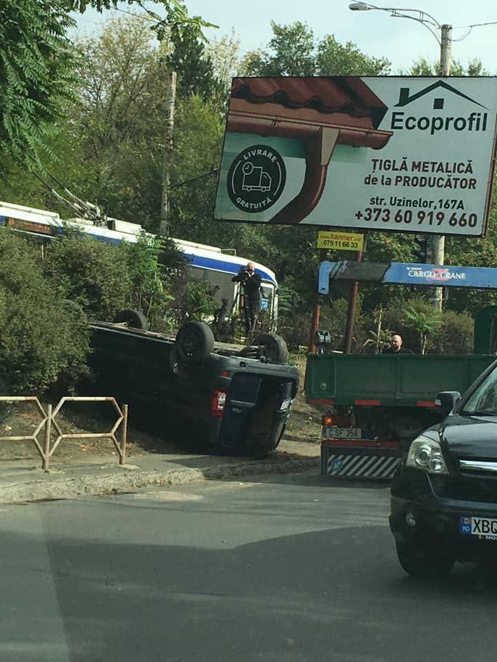 Zi cu ghinion pentru un șofer din Chișinău. Acesta s-a inversat cu mașina după ce s-a lovit cu un camion, pe strada Petricani, transmite Telegraph.md, cu referire la Echipa.md