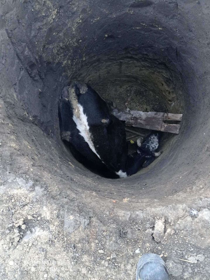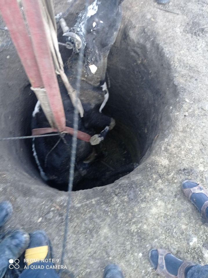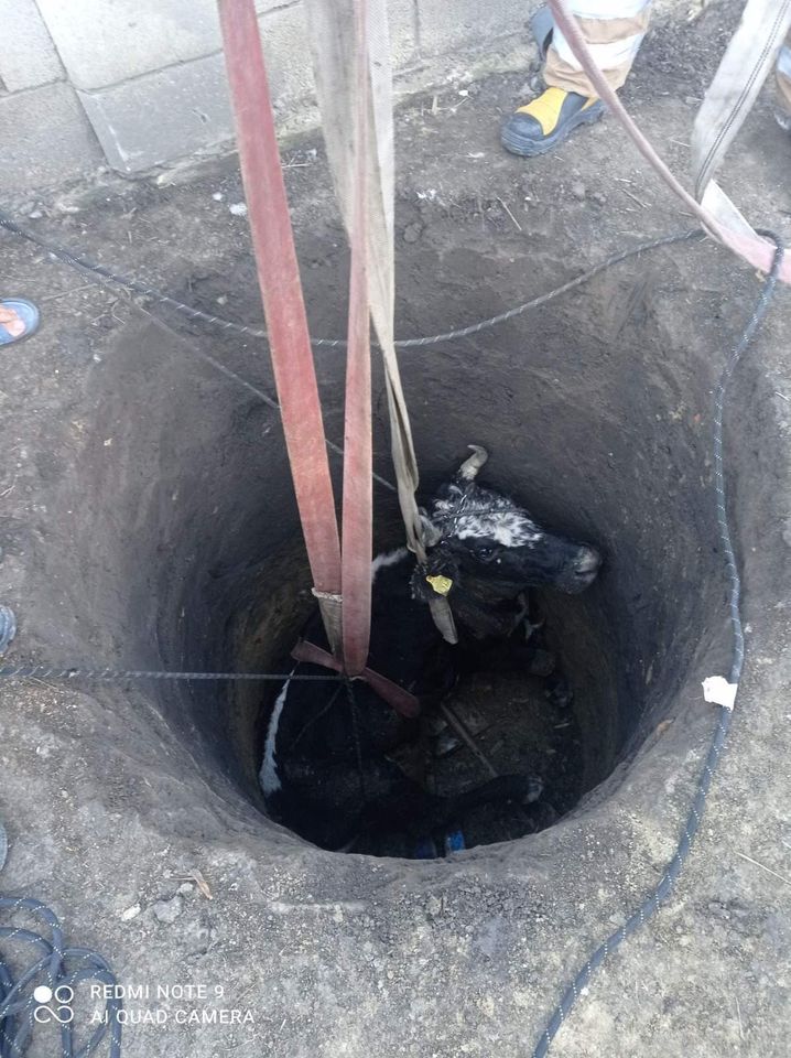 La fața locului a intervenit un echipaj de pompieri care a reușit în mai puțin de o oră să scoată nevătămată bovină. Animalul a fost salvat de la adâncimea de 3 metri, fiind utilizat echipament specializat.
