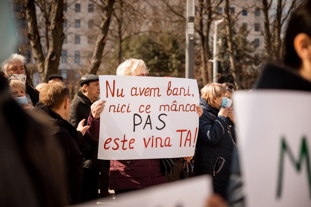 „Țara noastră rămâne fără viitor din cauza actualei guvernări, în frunte cu Maia Sandu. Jos Maia Sandu! Ne-am săturat să auzim zilnic vești despre scumpiri, iar ei să stea în birourile lor și să nu facă nimic. Pensionarii noștri nu mai au din ce să trăiască. Numără fiecare bănuț din pensie de 1500 sau 2000 de lei. Ei stau în rând ore în șir pentru a cumpăra pâine mai ieftină. E un adevărat genocid împotriva oamenilor în vârstă. Problemele cetățenilor noștri au fost uitate. Maia Sandu este o hoață care ne fură viitorul! Demisia!”, a scandat Serghei Burgudji.