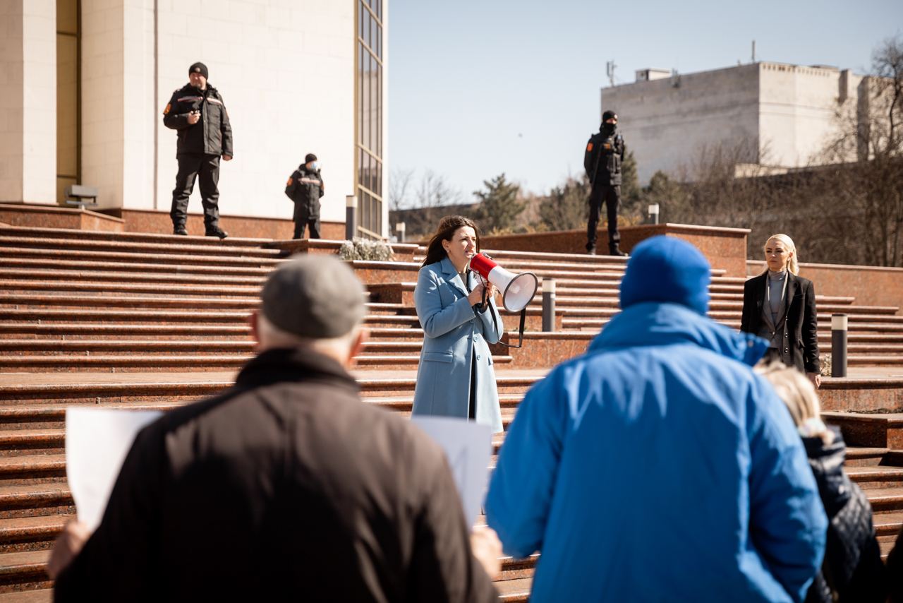„Am venit aici, ca să le dăm ultimatum Maiei Sandu și PAS, cărora le cerem să plece din funcțiile pe care le au. Demisia! Prețurile cresc zilnic, oamenii nu mai pot face față facturilor. Recent, s-a scumpit curentul, deși ne-au promis că în perioada stării de urgență nu se va scumpi energia electrică. Banii cetățenilor sunt furați de coechipierii Maiei Sandu. Trei milioane de dolari pe zi sunt cheltuiți pentru rezolvarea crizei refugiaților, dintre care un milion de dolari este luat din bugetul de stat. Nu există transparență în acest sens, nu a fost prezentat niciun raport în fața cetățenilor. Nu putem constata decât că banii destinați refugiaților și cetățenilor noștri sunt furați. Din acest motiv, Maia Sandu și colegii săi trebuie să stea la pușcărie”, a declarat Marina Tauber.
