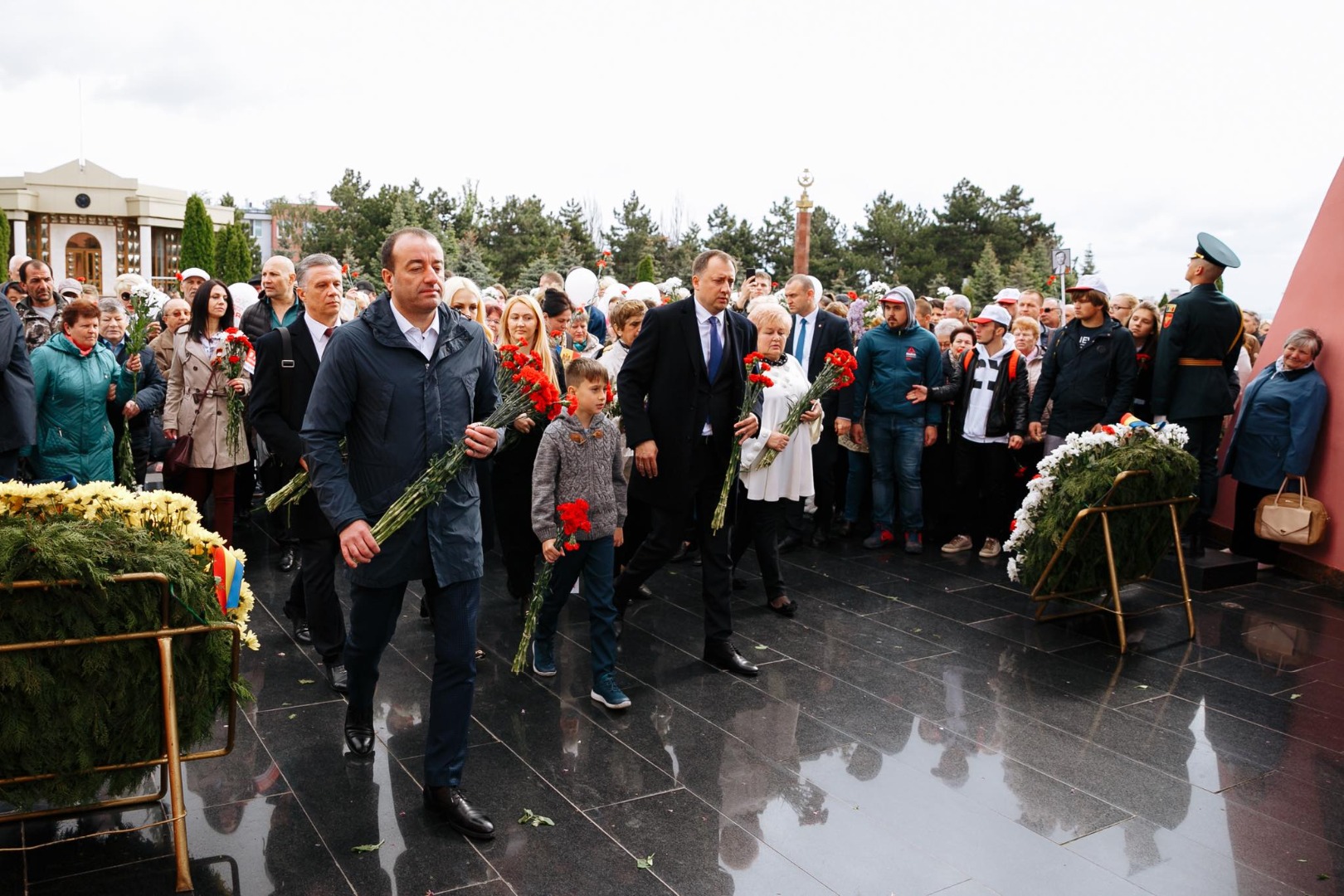 După care manifestanții, în mod organizat, au pornit în marș spre Complexul Memorial „Eternitate”, coloana întinzându-se pe o distanță de câteva sute de metri pe strada Ismail. În fața coloanei a mers un automobil de epocă, iar o fanfară a interpretat melodii populare dedicate victoriei asupra fascismului. Ilan Șor, dar și deputați și lideri ai Partidului Politic ȘOR au mers în marș împreună cu oamenii, după care au depus flori la Complexul Memorial Eternitate, în memoria celor căzuți în Marele Război.