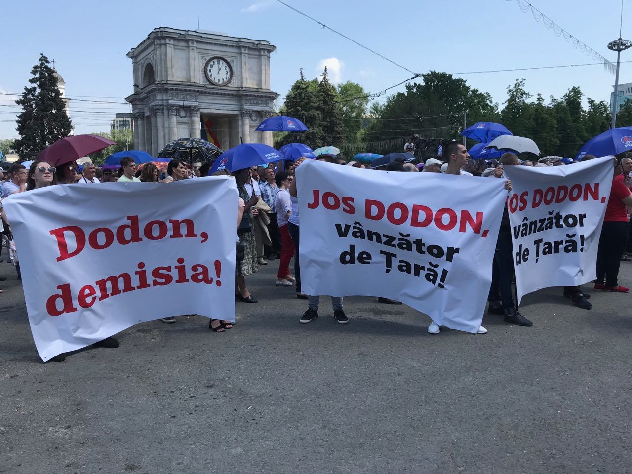 Protestatarii au cerut demisia imediată a lui Igor Dodon pentru trădare de ţară, finanţarea ilegală din exterior a partidului său şi uzurparea puterii în stat.