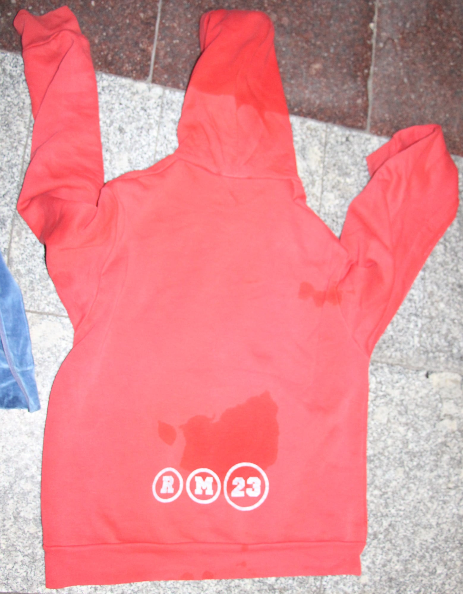 Îmbrăcăminte: Geacă din material de culoare gri și una neagră din piele, bluză albastră, hanorac roşu cu inscripţia „RM 23”, maiou de culoare gri, ştrampi negri, lenjerie (sutien) de culoare albă, ciorapi gri, centură neagră, adidaşi de culoare violet combinat cu alb.