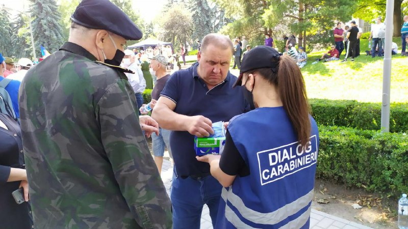 În cadrul protestului de astăzi, organizat în fața Parlamentului de către veterani, s-a putu vedea cum polițiștii și carabinierii împărțeau participanților măști faciale de protecție, transmite Telegraph.md