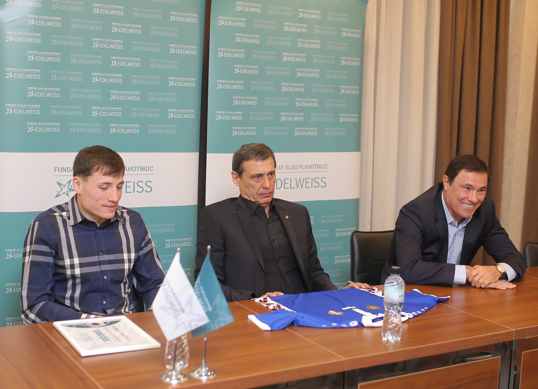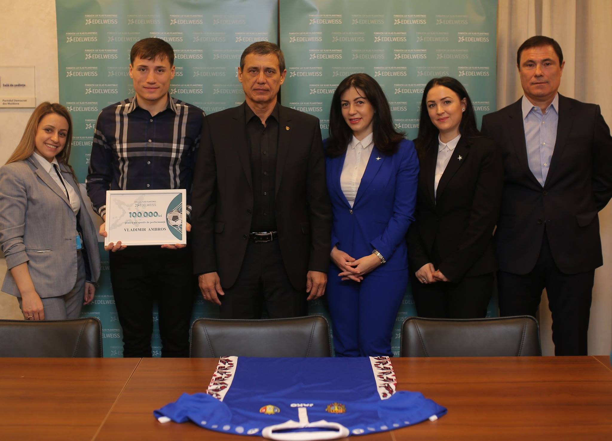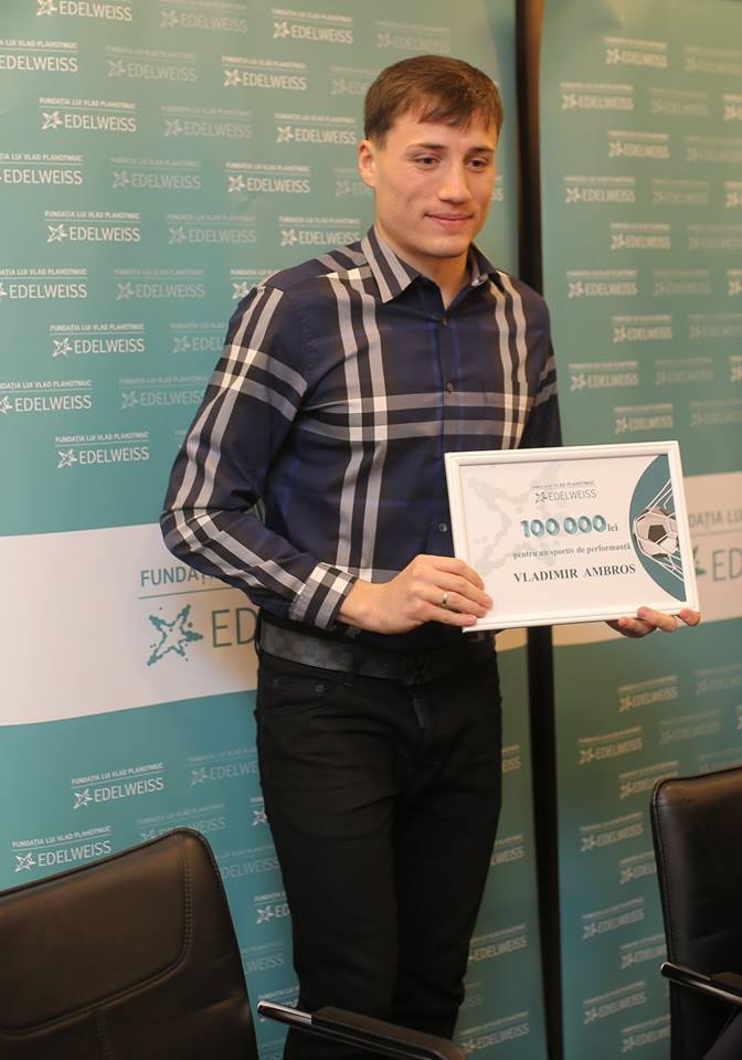 „Vladimir Ambros și-a câștigat săptămâna trecută aplauzele tuturor moldovenilor prin determinarea cu care a luptat până în ultima secundă. Golul marcat în poarta Franței a fost pentru noi dovada că echipa națională este una cu jucători ambițioși, care merită susținerea noastră. Voucherul de 100.000 de lei, din partea Fundației lui Vlad Plahotniuc „Edelweiss”, a ajuns astăzi la Vladimir Ambros. Îi urăm cât mai multe meciuri frumoase și reușite pe teren”, a spus directorul executiv Edelweiss, Lidia Cucoș.