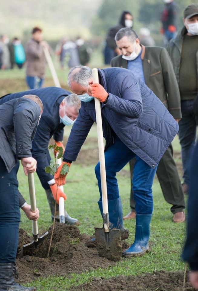 În pofida timpului ploios și rece, președintele Igor Dodon a participat la acțiunea de înverzire a plaiului natal din Ungheni, la frontiera cu România.