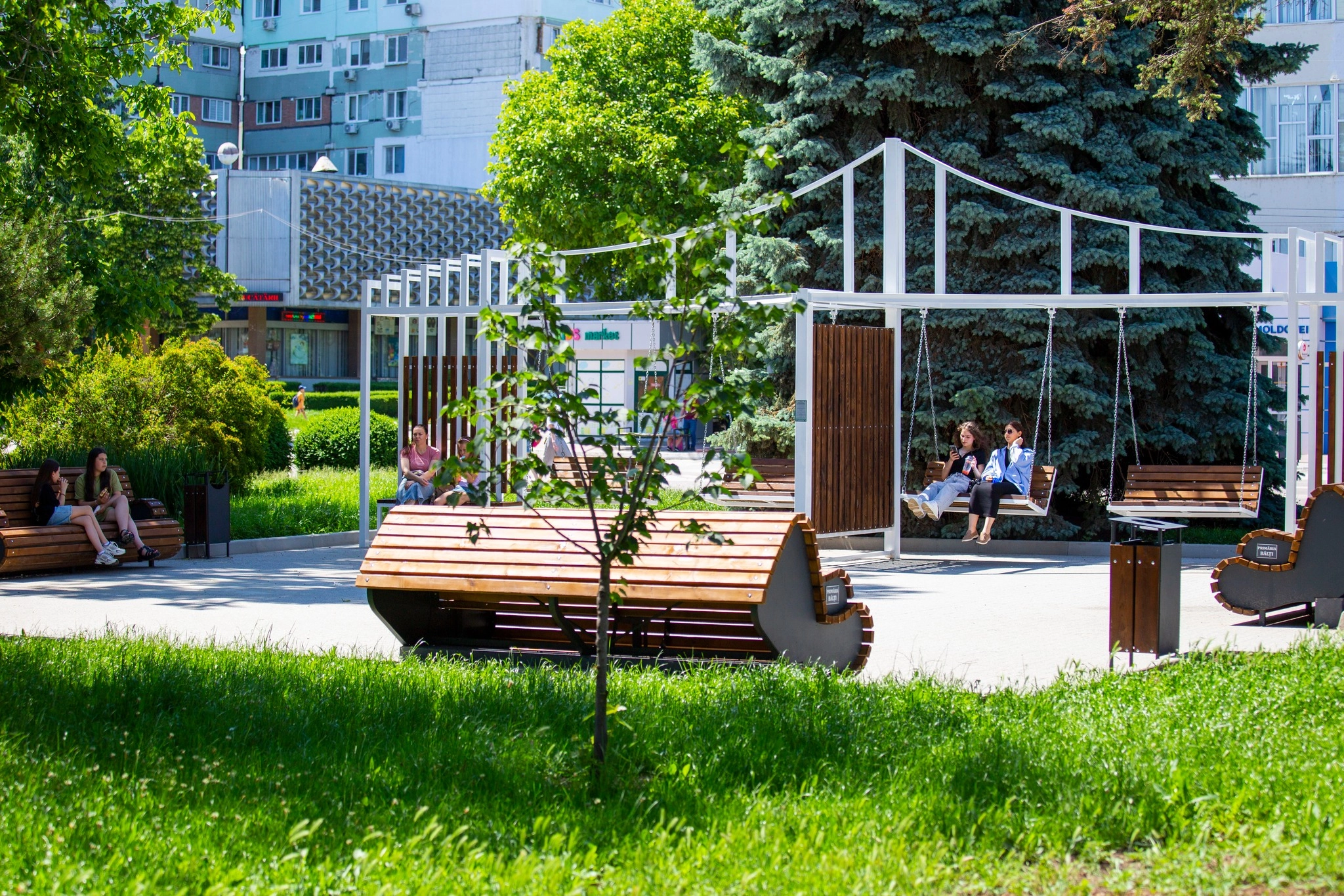 În cadrul proiectului, au fost instalate leagăne, bănci confortabile și mobilier urban modern, care oferă un spațiu primitor și plăcut pentru relaxare și socializare.