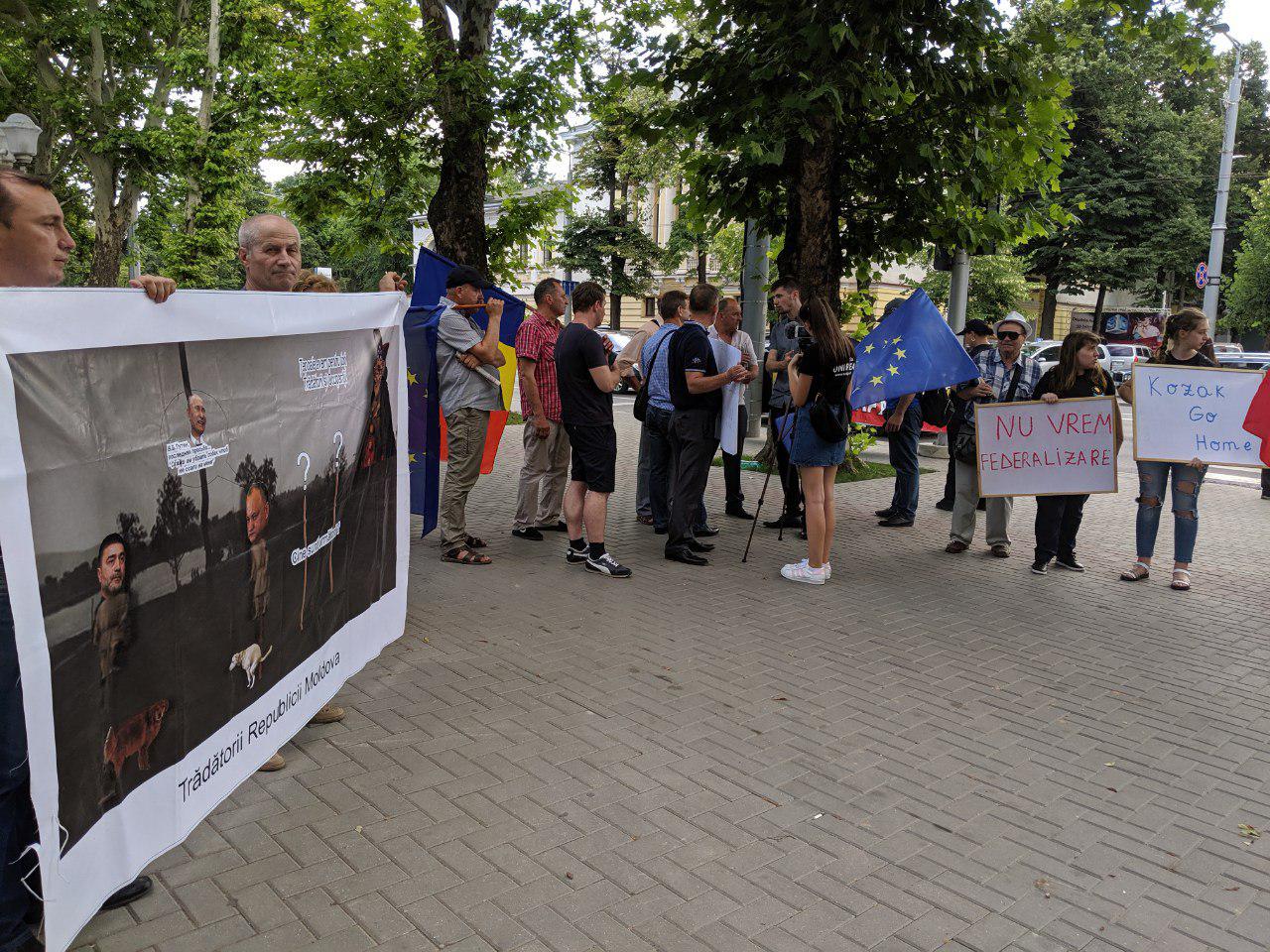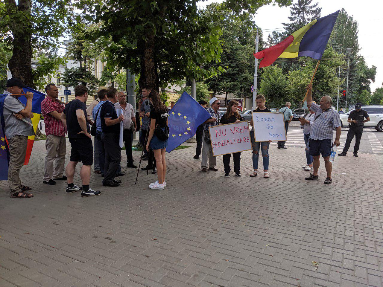 Organizația unionistă Unirea-ODIP, în frunte cu tânărul Vlad Bilețchi, a organizat astăzi o acțiune de protest la președinție, împotriva sosirii vicepremierului rus, Dmitrii Kozak.