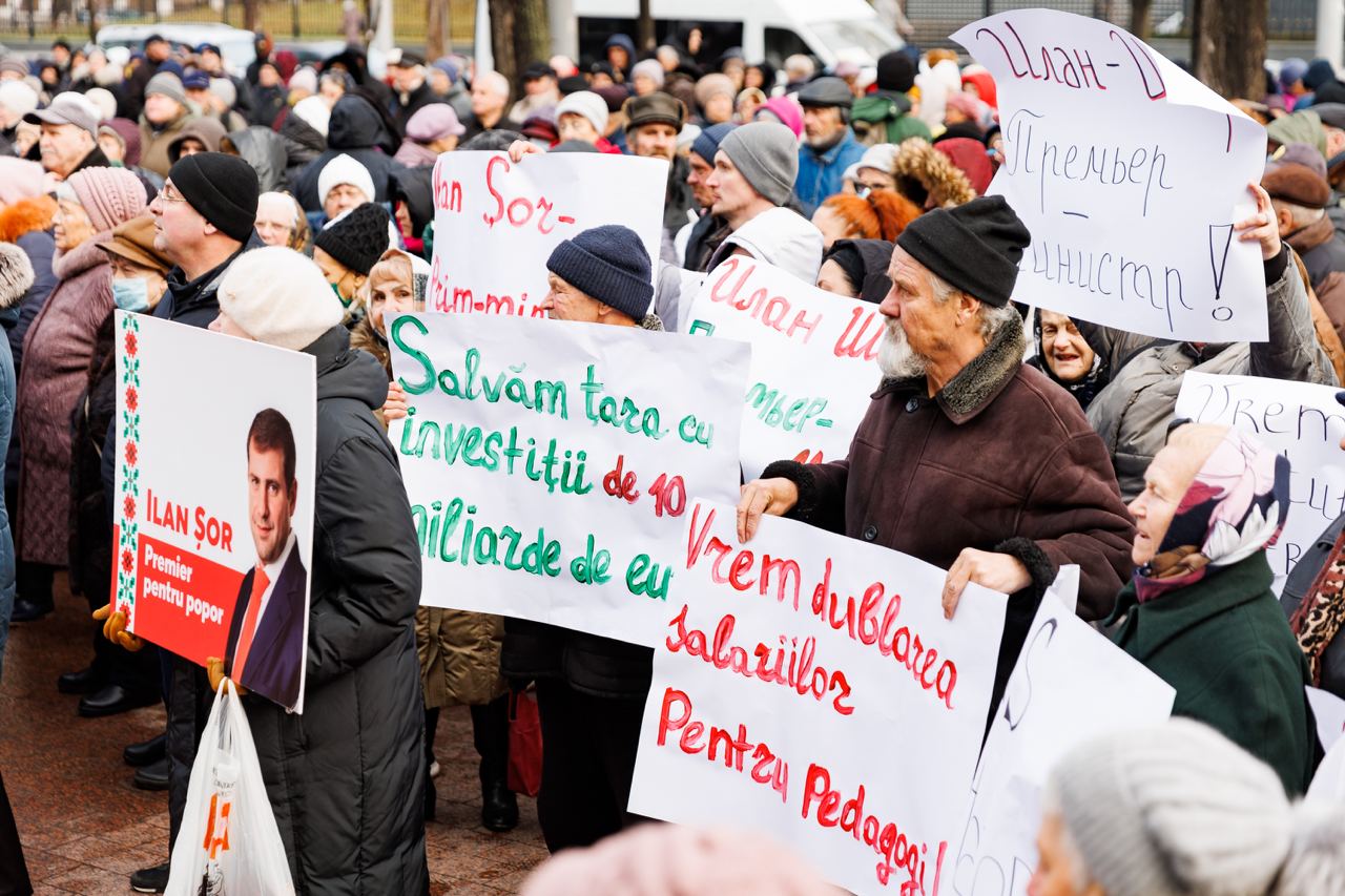 Mai mulți membri și simpatizanți ai Partidului „ȘOR”, precum și cetățeni de rând au organizat, în această dimineață, un protest în fața Parlamentului. Manifestanții și-au exprimat nemulțumirea față de aprobarea, în mare grabă, a bugetului de stat pentru anul viitor, de către miniștrii și deputații PAS, și că acesta nu prevede salarii, pensii și ajutoare mai mari din partea statului. Totodată, cetățenii cer o indemnizație unică de 10 mii de lei, conform planului investițional prezentat de Ilan Șor, săptămâna trecută.