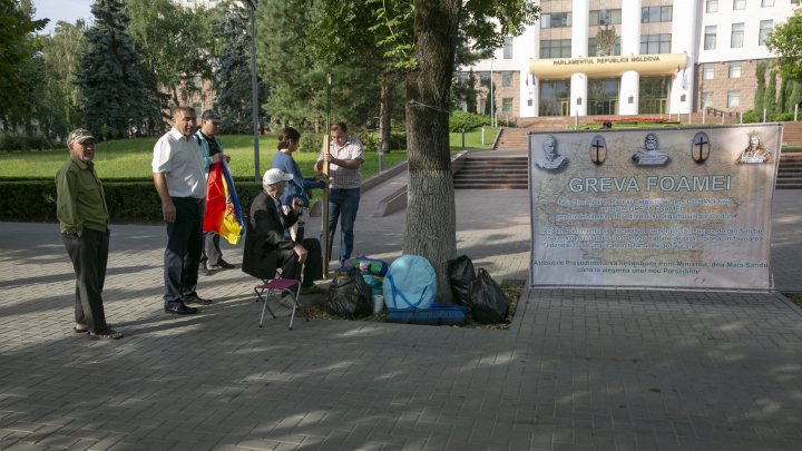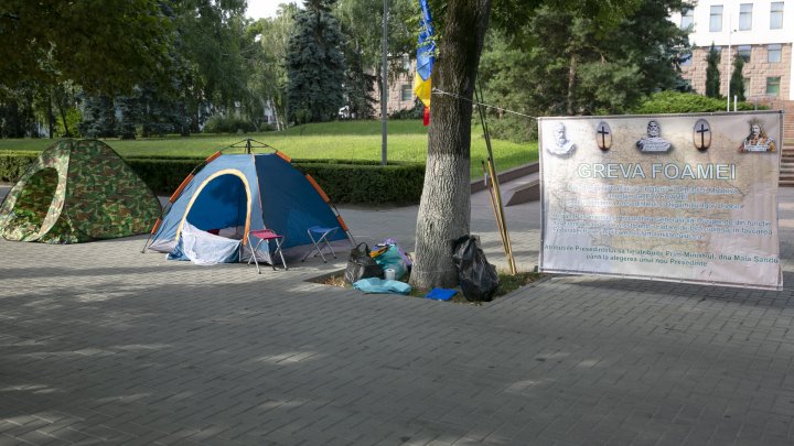 Protestatarii care au declarat greva foamei pentru a obţine demisia preşedintelui Igor Dodon au rămas şi pe parcursul nopţii în corturile intalate în fața Parlamenului. Aceştia nu au avut decât apă cu ei, relatează Publika.md.