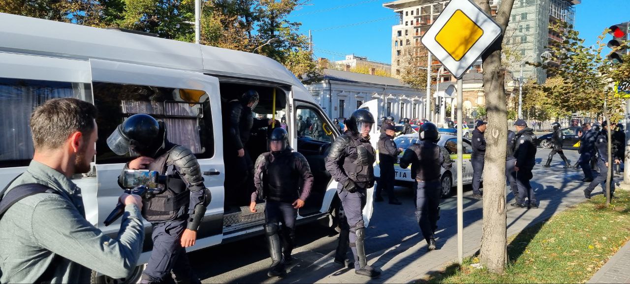 Acțiunile forțelor de ordine au stârnit nemulțumirea protestatarilor, care au acuzat poliția că apără guvernarea, în loc să reprezinte interesele cetățenilor și să le respecte dreptul la protest. „Rușine!”, „Jos Maia Sandu!”, „Noi suntem poporul!”, „Moldova, stat polițienesc!”, sunt câteva dintre mesajele pe care le scandau manifestanții, în timp ce erau luați pe sus de către mascați.