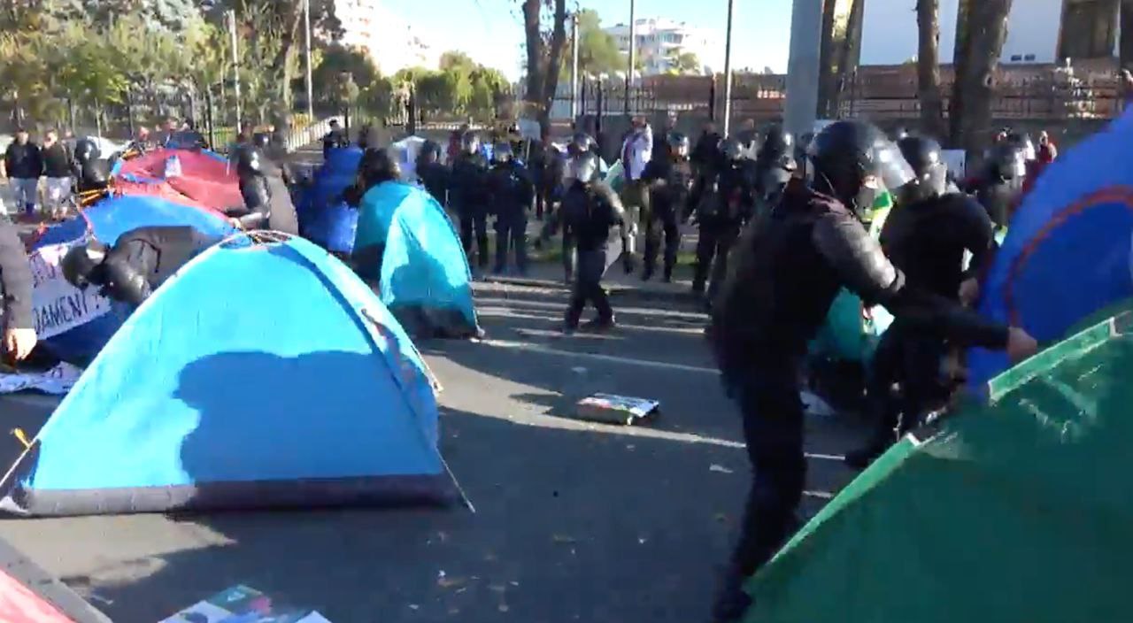 Corturile protestatarilor au fost ridicate și duse într-o direcție necunoscută, cu toate bunurile din interior, precum saltelele, plăpumile și alte lucruri personale. Multe dintre ele au fost deteriorate, în timp ce erau smulse de pe drum.