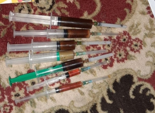 De asemenea, au fost ridicate mai multe obiecte pe care erau depuneri de substanță cu miros specific caracteristic marijuanei, seringi utilizate și pline cu substanță cu conținut necunoscut.