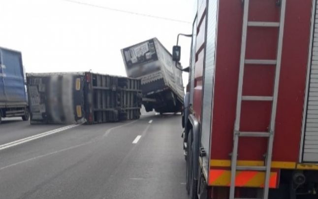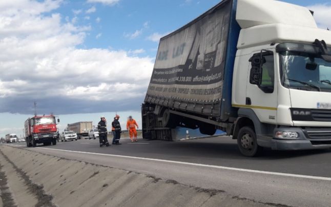 „Pompierii giurgiuveni acţionează în acest moment pe DN 5, în dreptul localităţii Uzunu, după ce un autocamion s-a răsturnat pe carosabil blocând trei benzi de circulaţie, două spre Giurgiu şi una spre Bucureşti. Tirul nu avea încărcătură, fiind răsturnat de vântul puternic. O autospecială cu apă şi spumă din cadrul Punctului de lucru Călugăreni s-a deplasat în zonă pentru asigurarea măsurilor PSI”, a declarat luni, presei, purtătorul de cuvânt al ISU Giurgiu, Nicoleta Beianu.
