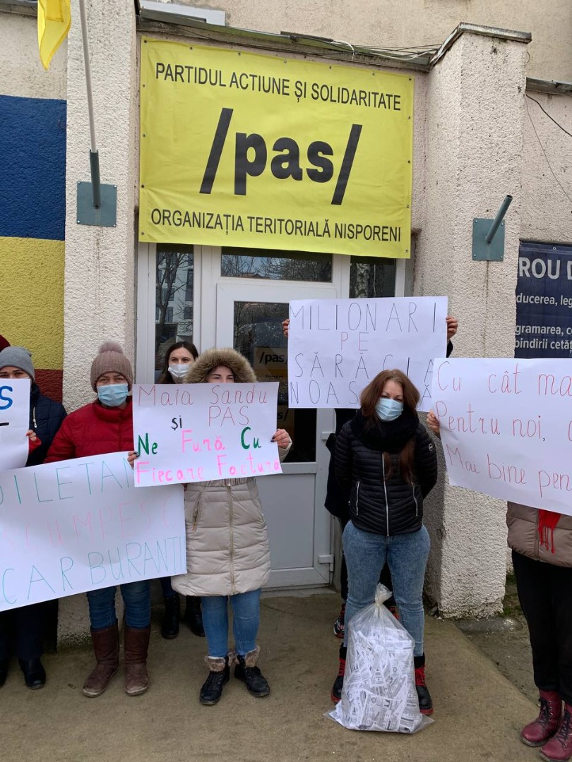 Saci cu facturi au fost aduse, astăzi, la sediile PAS, în cadrul protestelor organizate de Partidul „ȘOR”, în 22 de localități concomitent. Sute de oameni au ieșit în stradă ca să-și exprime nemulțumirea față de scumpirile fără precedent, din ultima vreme. Manifestanții au spus într-un glas că nu mai pot au cu ce să-și plătească facturile pentru întreținere și le cer celor din PAS să le achite, dacă nu au găsit o soluție pentru a evita scumpirile.