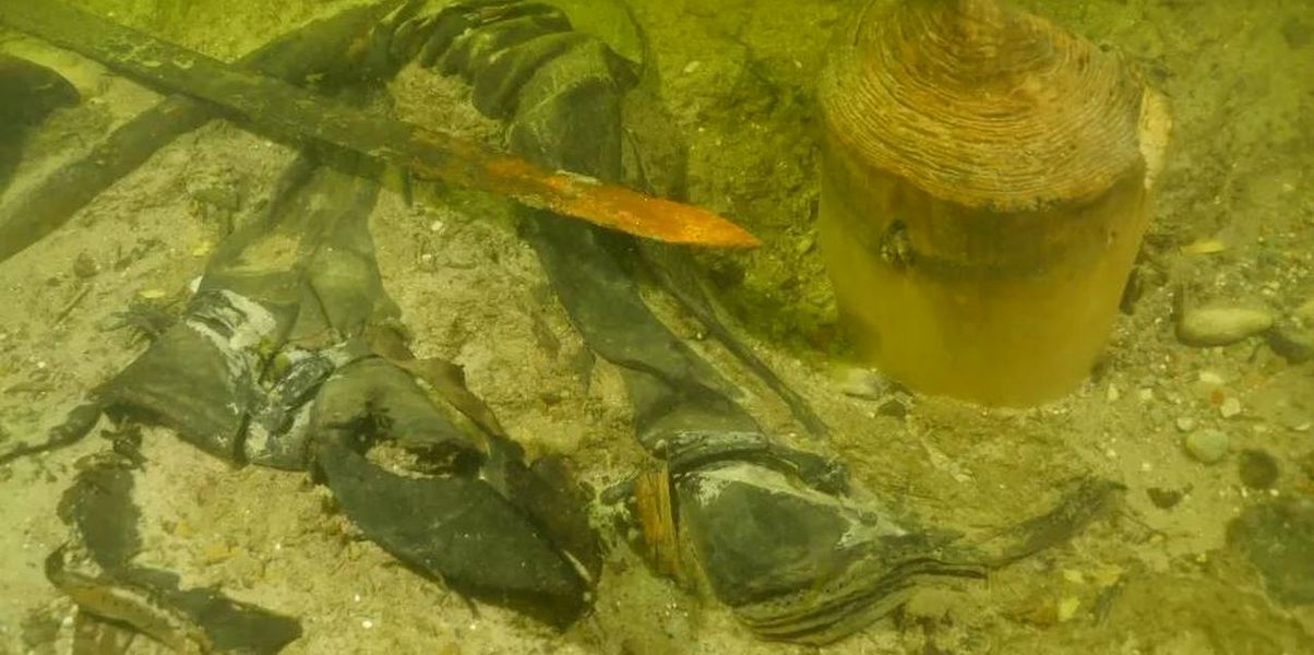 FOTO // Scheletul unui soldat medieval, descoperit pe fundul unui lac în Lituania. Marea surpriză care a urmat