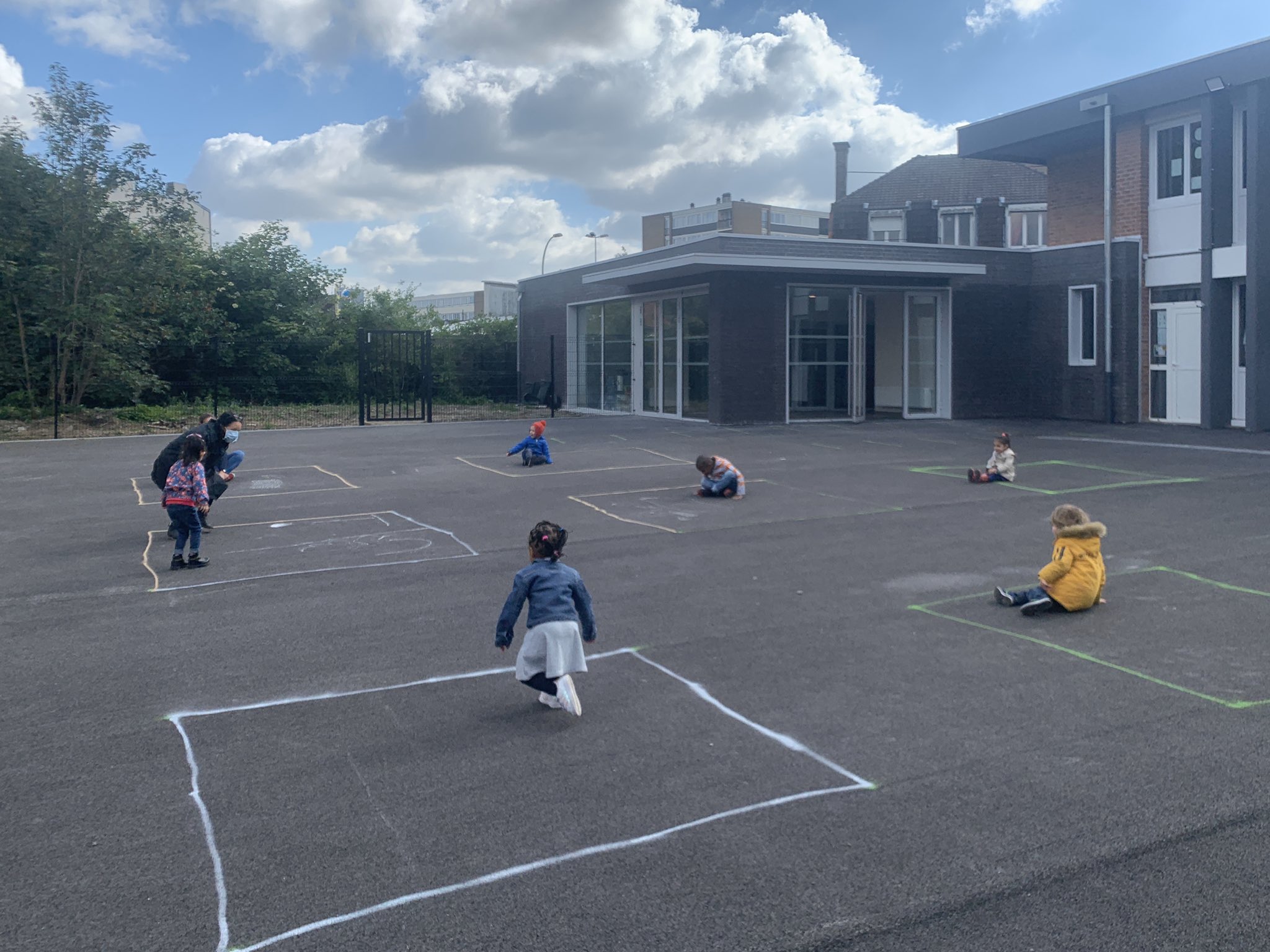 „Pentru a asigura distanțarea socială în timpul pauzei, cadrele didactice au făcut aceste careuri. Copiii se joacă, dansează, sar, râd împreună, dar din aceste careuri separate. Din ce am văzut, ei nu o privesc ca pe o pedeapsă”, a scris Lionel Top pe Twitter.
