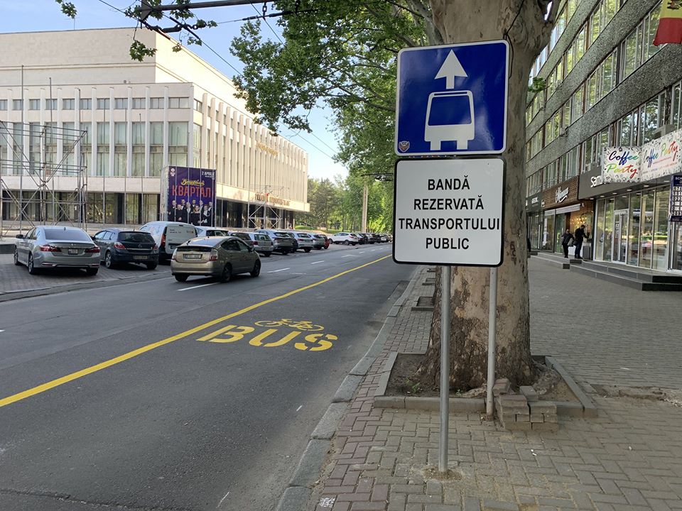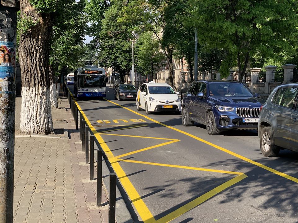 Ieri pe str. Pușkin a fost aplicat marcajul care delimitează banda rezervată circulației transportului public, transmite Telegraph.md