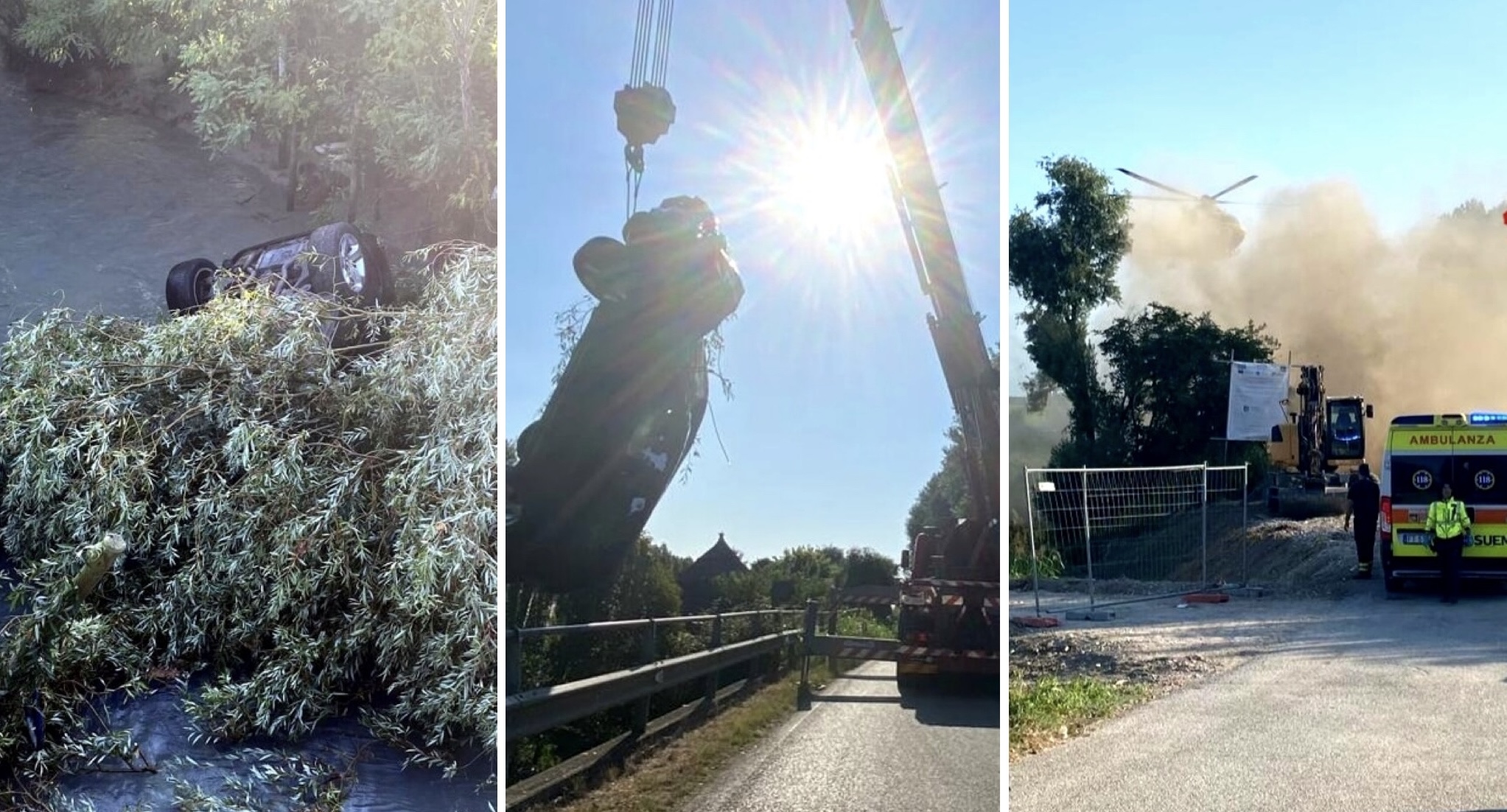 Elicopterul de salvare al SUEM a aterizat la fața locului pentru a acorda primul ajutor supraviețuitorului, un bărbat de 33 de ani aflat în stare gravă. Accidentul probabil a avut loc în jurul orei 5 sau 6 dimineața; se pare că mașina s-a ciocnit de un copac înainte de a ajunge în canal.