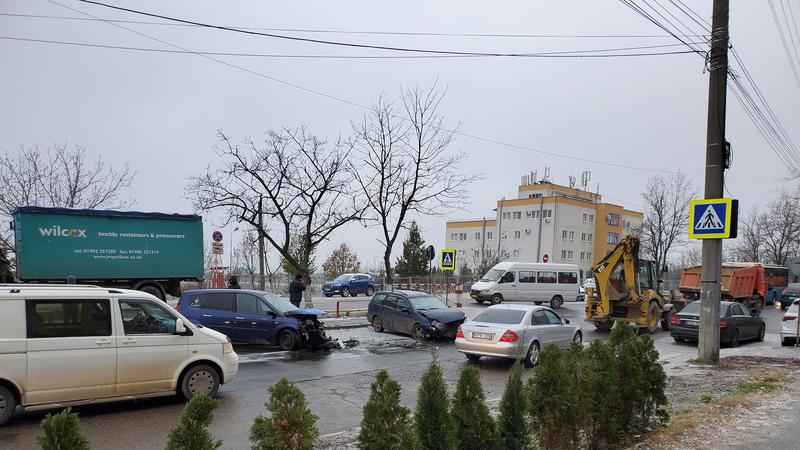Accidentul s-a produs în jurul orei 7.35 între trei autoturisme de marca Toyota, Renault, Ford.