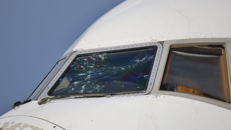 Avionul s-a întors după 90 de minute de zbor. Geamurile cabinei piloților erau fisurate, la fel și fuselajul avionului.
