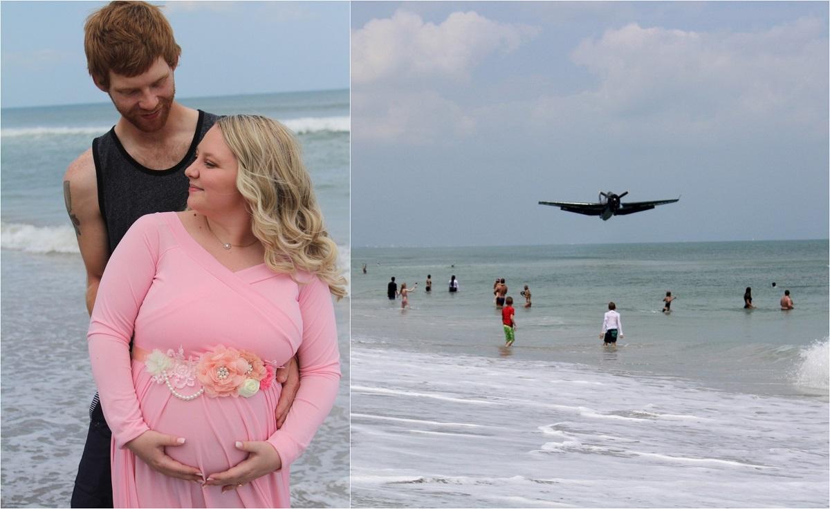 Amber Ditmer, în vârstă de 40, a crezut că nu vede bine atunci când un avion se apropia cu repeziciune de mal, la mică distanţă de cuplul ca poza fericit. Cei doi stăteau îmbrăţişaţi, privind unul la celălalt, în ceea ce trebuia să fie o fotografie romantică înainte de naşterea copilului lor.