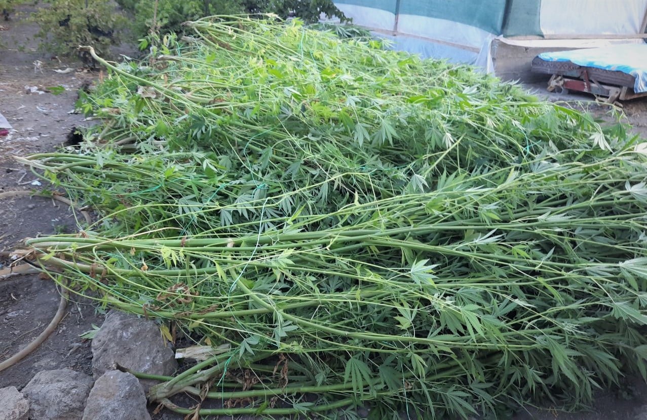 Din interiorul acesteia au fost ridicate 34 de tufe de cânepă bine îngrijite, cu lungimea de doi și trei metri.