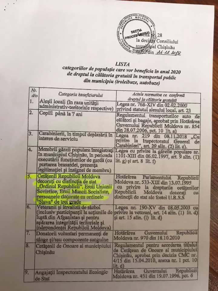 Decizia prin care victimele represiunilor politice nu mai pot beneficia de călătorii gratuite în transportul public a fost adoptată cu votul majorității consilierilor municipali din Chișinău, printre care cei de la PSRM, PȘ, PDM, PAS și PPDA, la sfârșitul lunii decembrie, atunci când aleșii locali au votat bugetul pentru anul 2020.