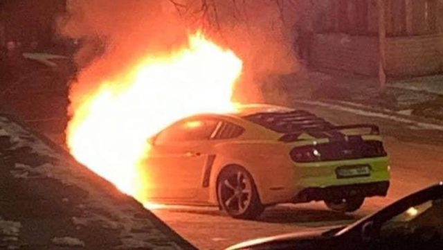 Bolid în flăcări în centrul Chișinăului. Un Ford Mustang a fost surprins cum arde în seara zilei de ieri, 16 februarie.
