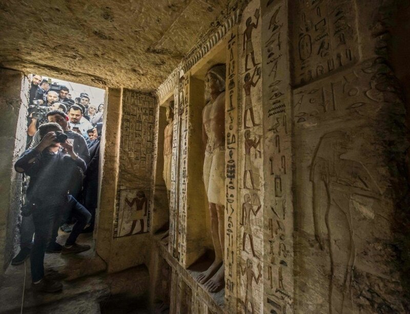 Mormântul descoperit în localitatea Sakkara, aflată la 30 de kilometri distanță de capitala Cairo, este înfrumusețat cu multe ieroglife și statuete ale faraonilor. Pe picturile rupestre se observă preotul suprem pe nume Vataie, împreună cu mama, soția sa și alte rude.
