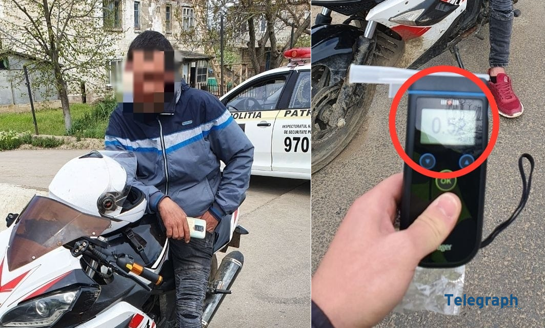 Astăzi, în jurul orei 11:00 polițiștii de patrulare din cadrul Direcției patrulare Sud aflați la menținerea ordinii și securității circulației rutiere, în localitatea Mihailovca, raionul Cimișlia au stopat o motocicletă condusă de un bărbat de 30 ani, care era în stare de ebrietate alcoolică, având o concentrație de alcool în aerul expirat de 0.52 mg/l.