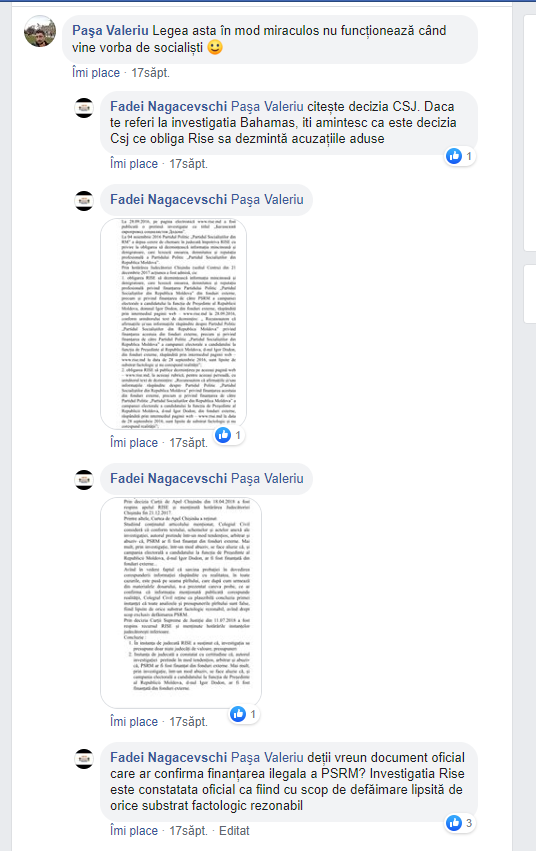 Acum, în Parlamentul Republicii Moldova vedem o idilă între Partidul Socialiștilor și blocul ACUM, compus din fracțiunile PAS și PPDA, dar cu puțin timp în urmă, aceștia erau dușmani de moarte și se întreceau în acuzații. Un astfel de schimb de replici putem vedea la postarea juristului PSRM, Fadei Nagaceschi, care a intrat într-o discuție care în momentul de față pare curioasă, cu activistul civic Valeriu Pașa, un simpatizant cunoscut al blocului ACUM.