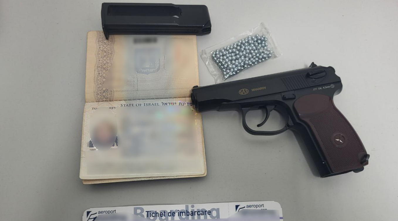 Polițiștii de frontieră din Aeroportul Internațional Chișinău au identificat în fluxul de călători un tânăr din Israel care deținea în bagajul de cală un pistol și un pachet cu bile din metal. Cazul a fost consemnat în data de 10 decembrie 2023.