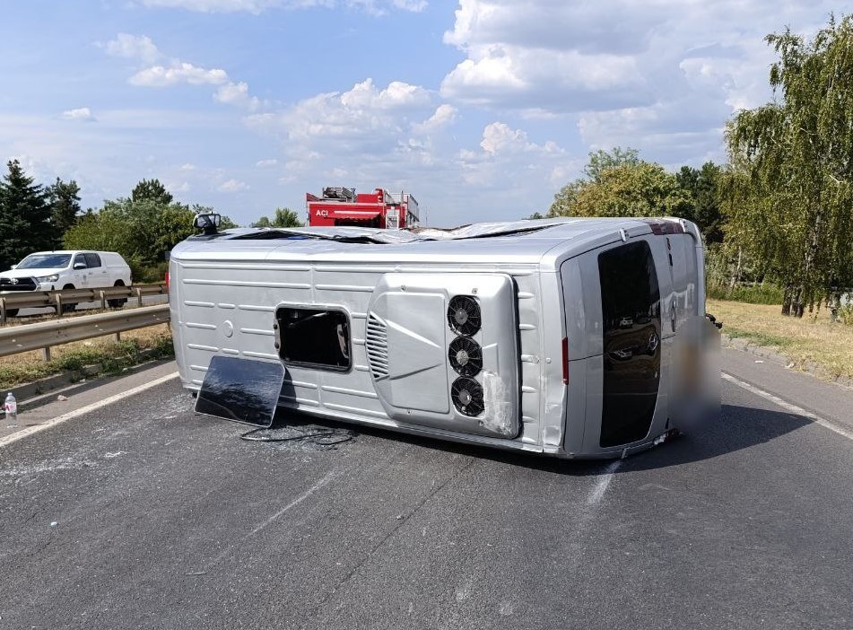 urma impactului, microbuzul, condus de un bărbat de 38 de ani, s-a răsturnat, iar 4 pasageri au fost transportați la spital pentru investigații medicale, alții 3 au primit ajutor medical la fața locului.