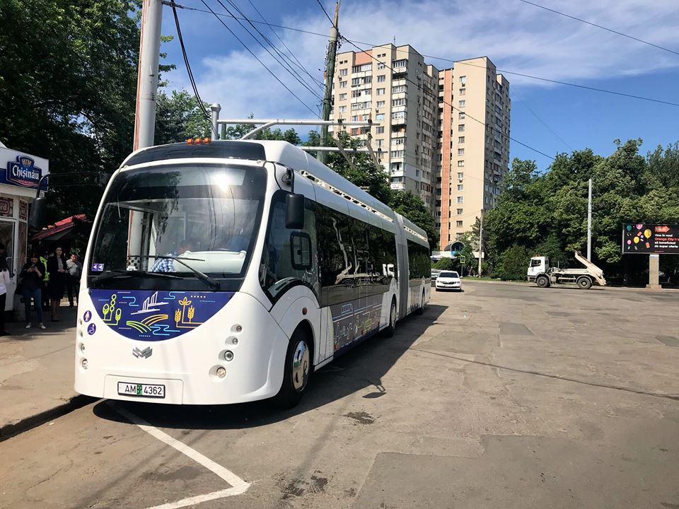 Un autobuz electric a fost pus pe rută astăzi în Chișinău. Electrobuzul donat de către Belarus va circula timp de o lună pe străzile capitale experimental.