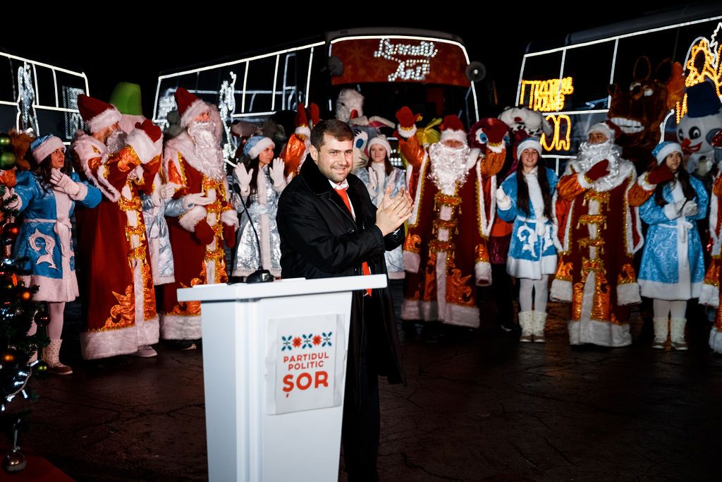 „Sărbătorile de iarnă ne-au adus întotdeauna minuni, magie, emoții pozitive și amintiri de neuitat. Cu părere de rău, în zilele de astăzi, nu în fiecare sat şi nu la fiecare copil ajung aceste minuni. De aceea, am decis ca prin intermediul proiectului nostru „Caravana de Crăciun” să ajungem în fiecare comună, să felicităm fiecare copil în parte, să instalăm pomi de sărbătoare. Moş Crăciun şi Alba ca Zăpăda le vor aduce picilor feeria sărbătorilor, pentru ca fiecare copil din localitățile noastre să primească plăcere de la sărbătorile de iarnă. Le doresc tuturor copiilor împlinirea tuturor dorințelor, iar noi îi vom ajuta”, a declarat Ilan Şor.