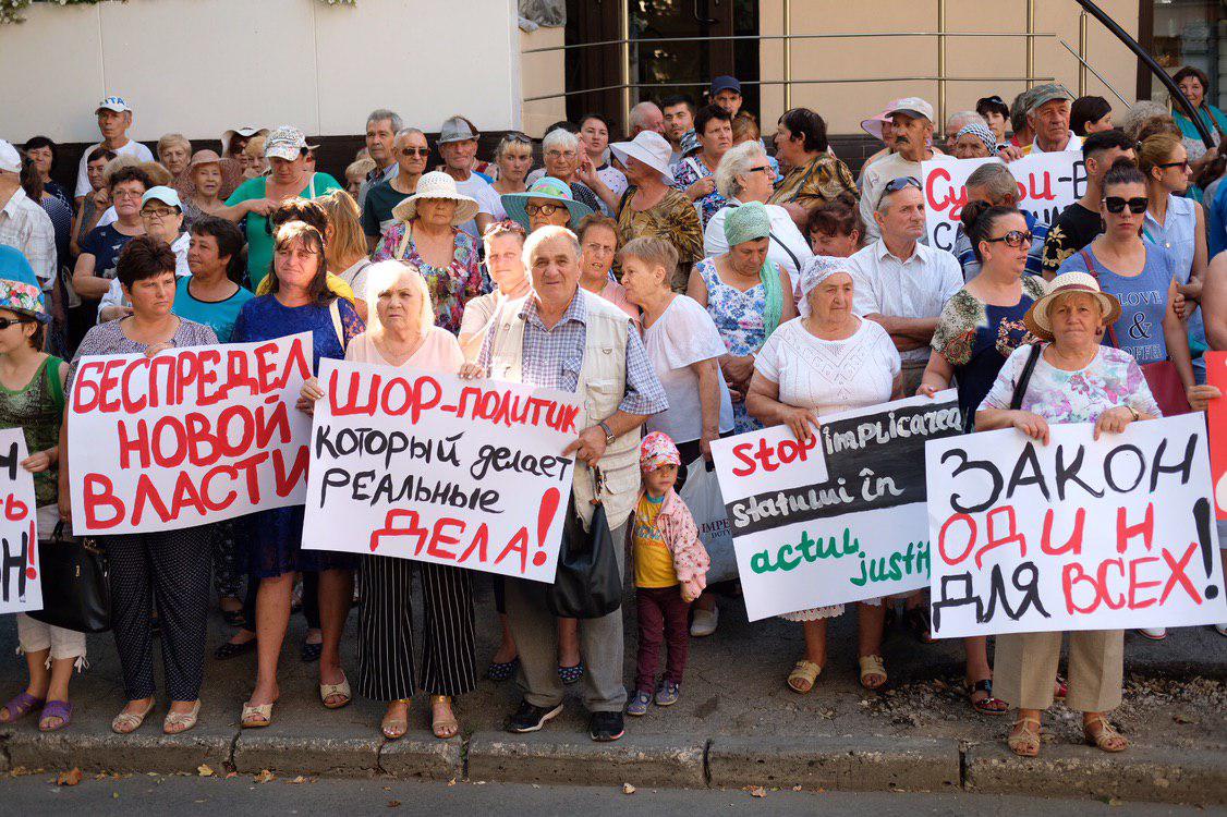 Protestatarii au venit cu lozinci și pancarte ”Vrem justiție corectă”, ” Ilan Șor suntem cu tine”, ”Șor este politicianul faptelor concrete”, ”Jos mâinile de pe Ilan Șor” și solicită judecătorilor să ia o decizie corectă și să nu se lase influențați de regimul actual de guvernare.